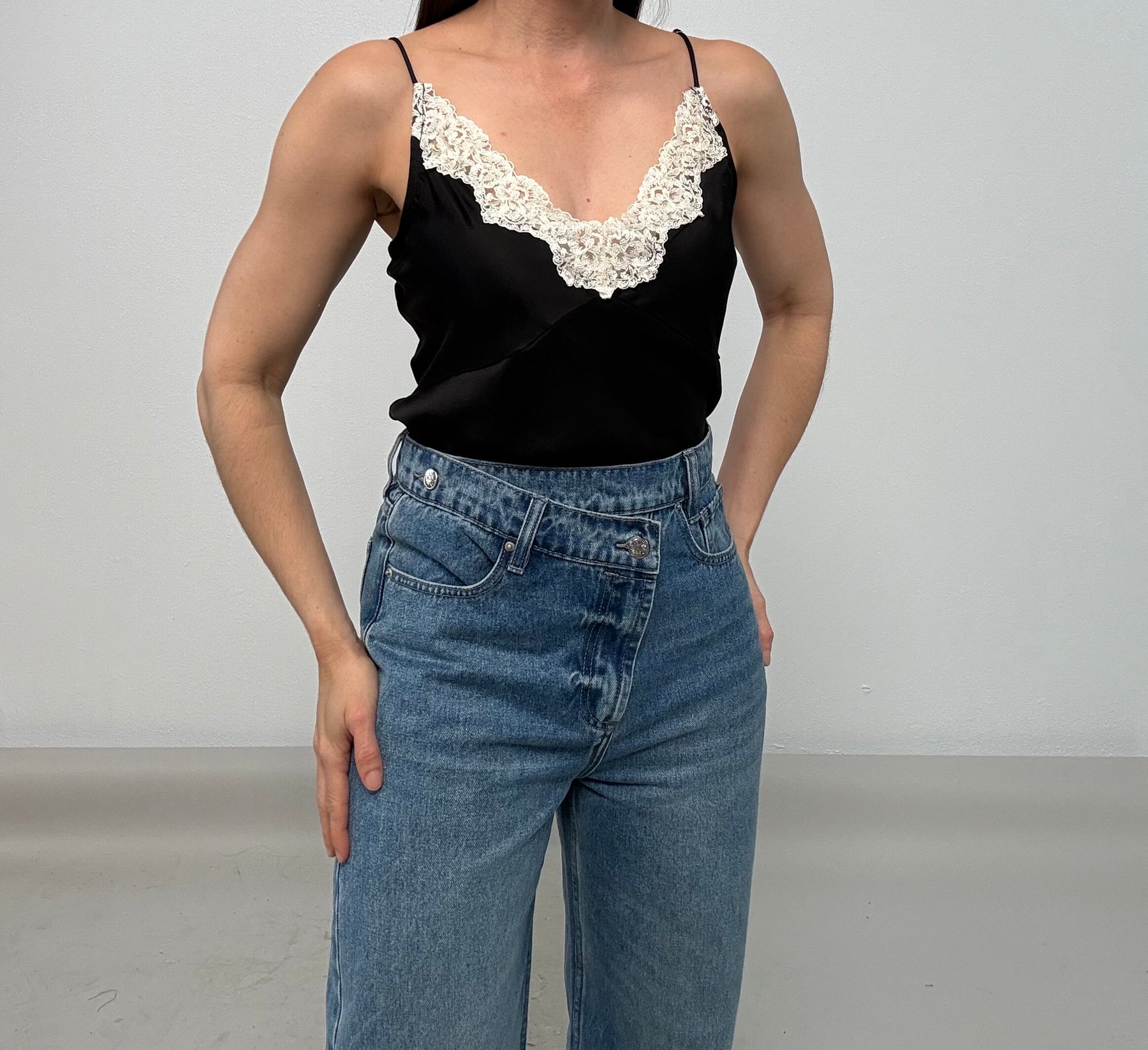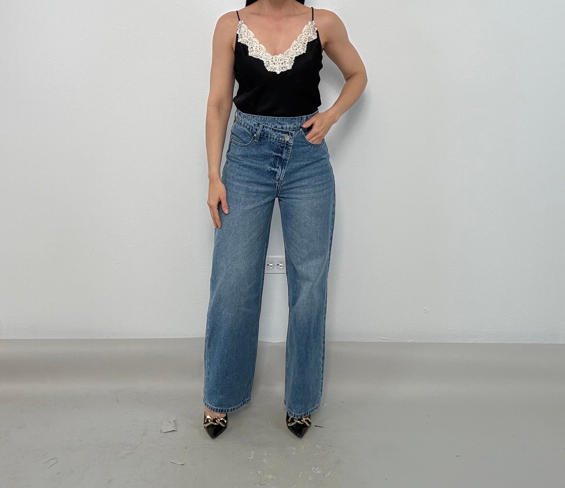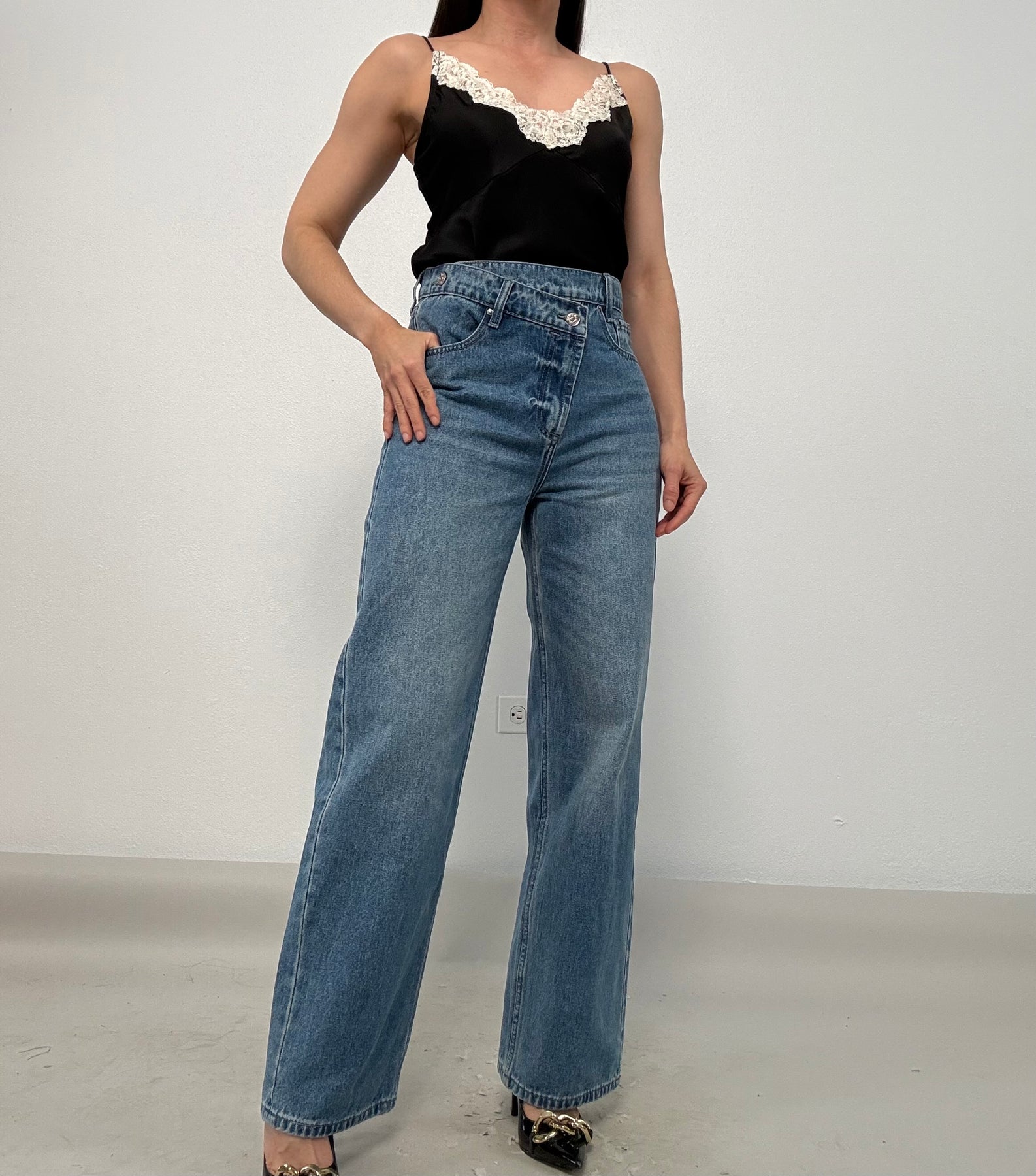 - Front Button & Zipper