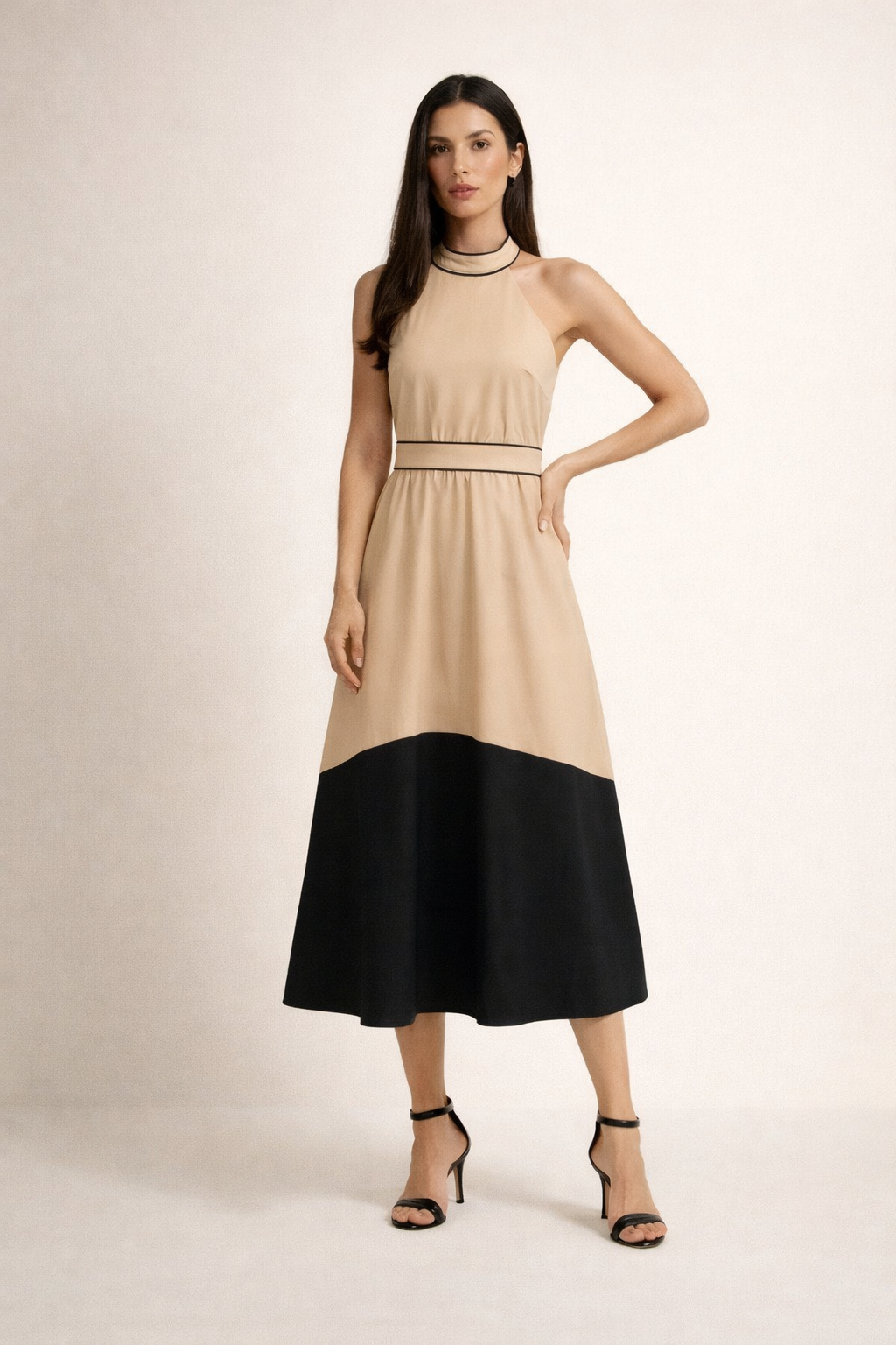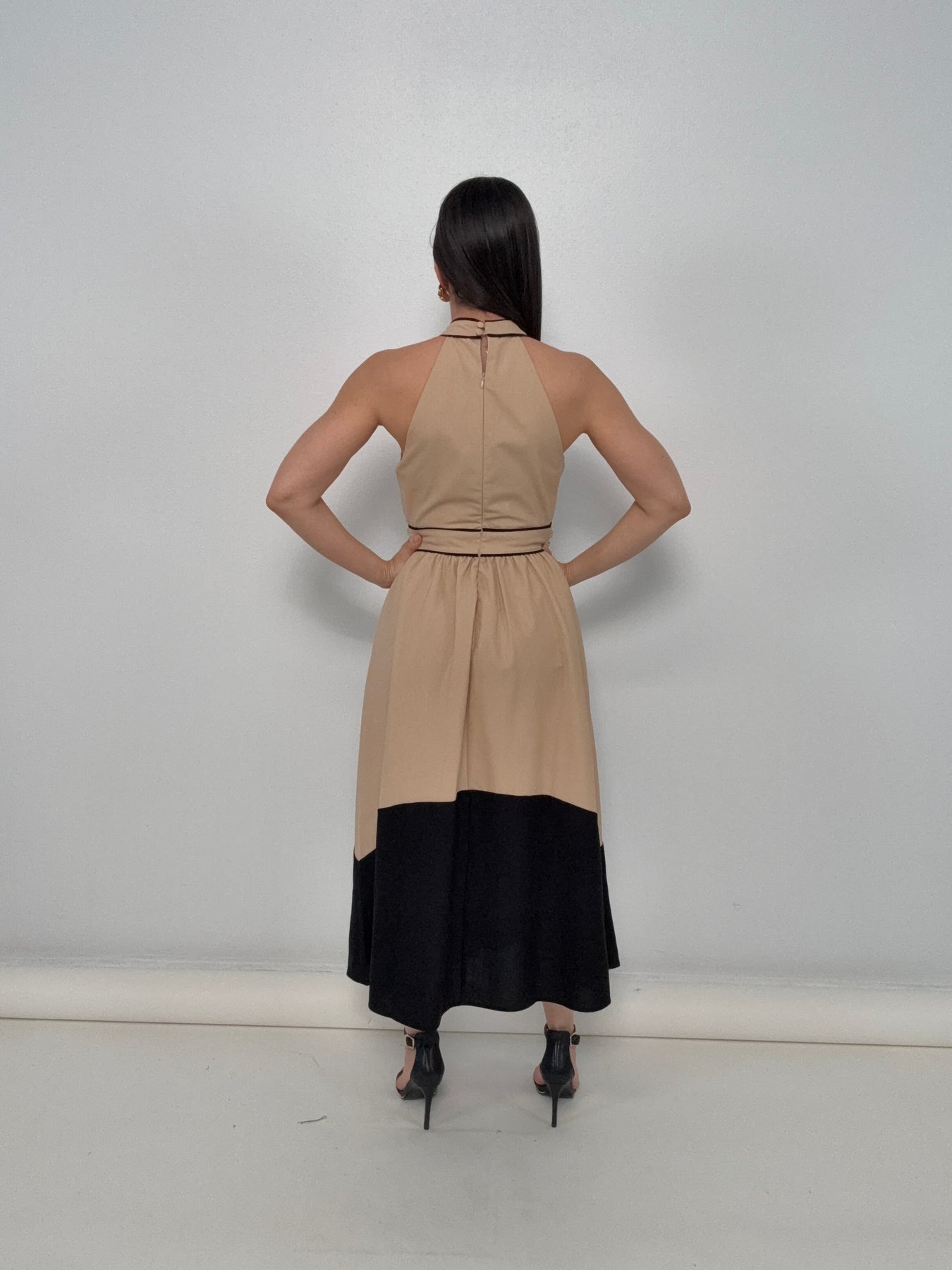Zadia Contrast Trim Halter Midi Dress