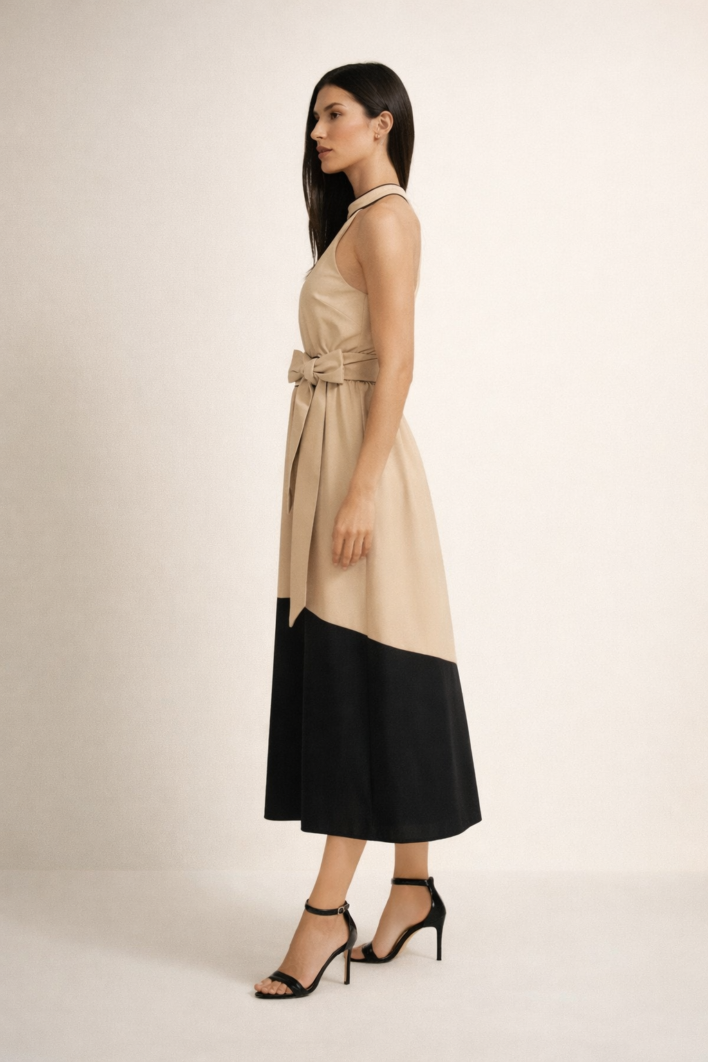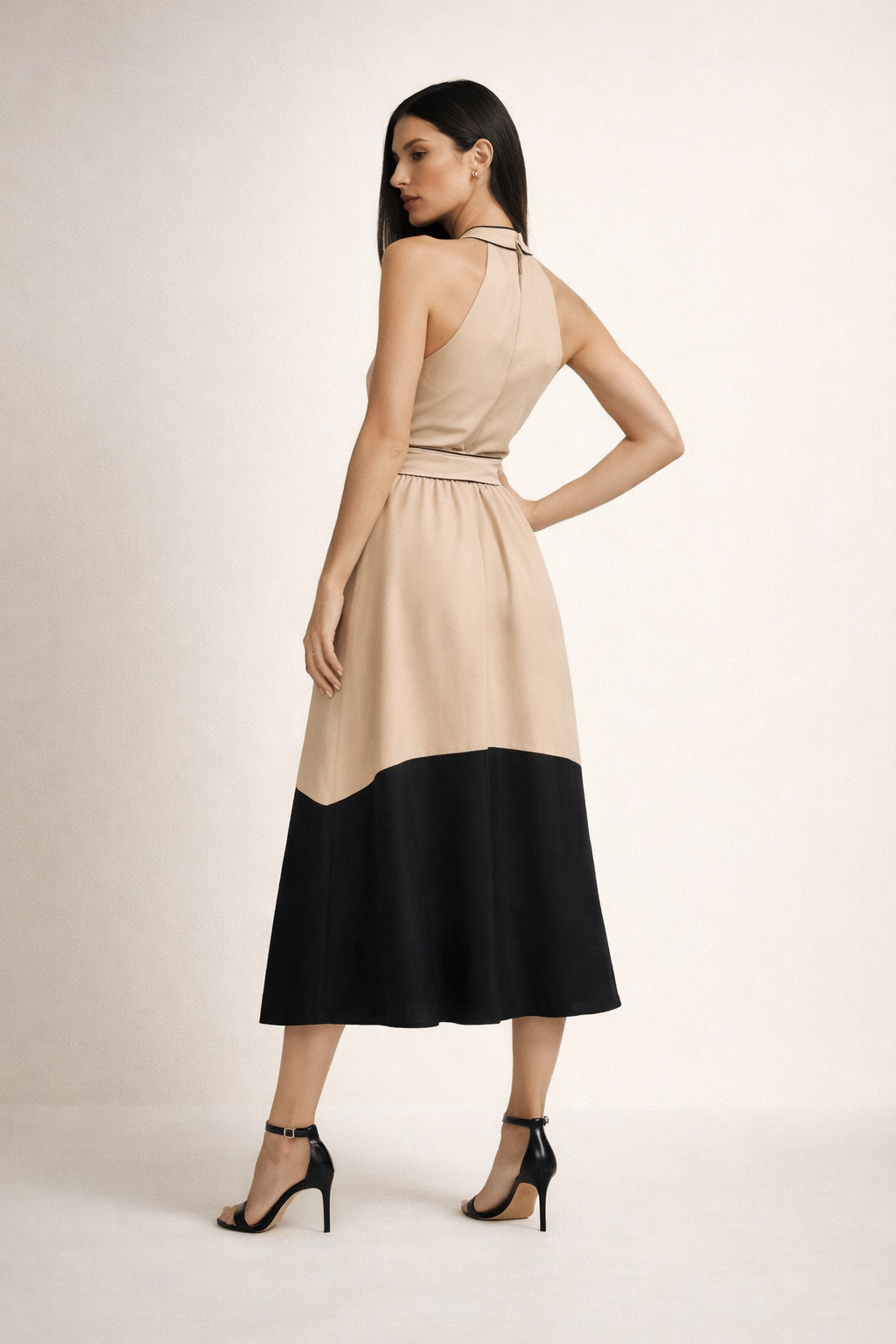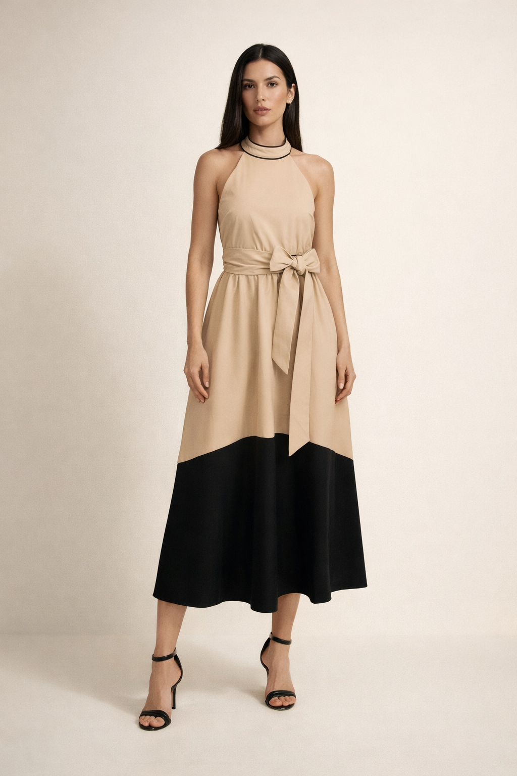 - Sleeveless Halter Neckline Midi Dress