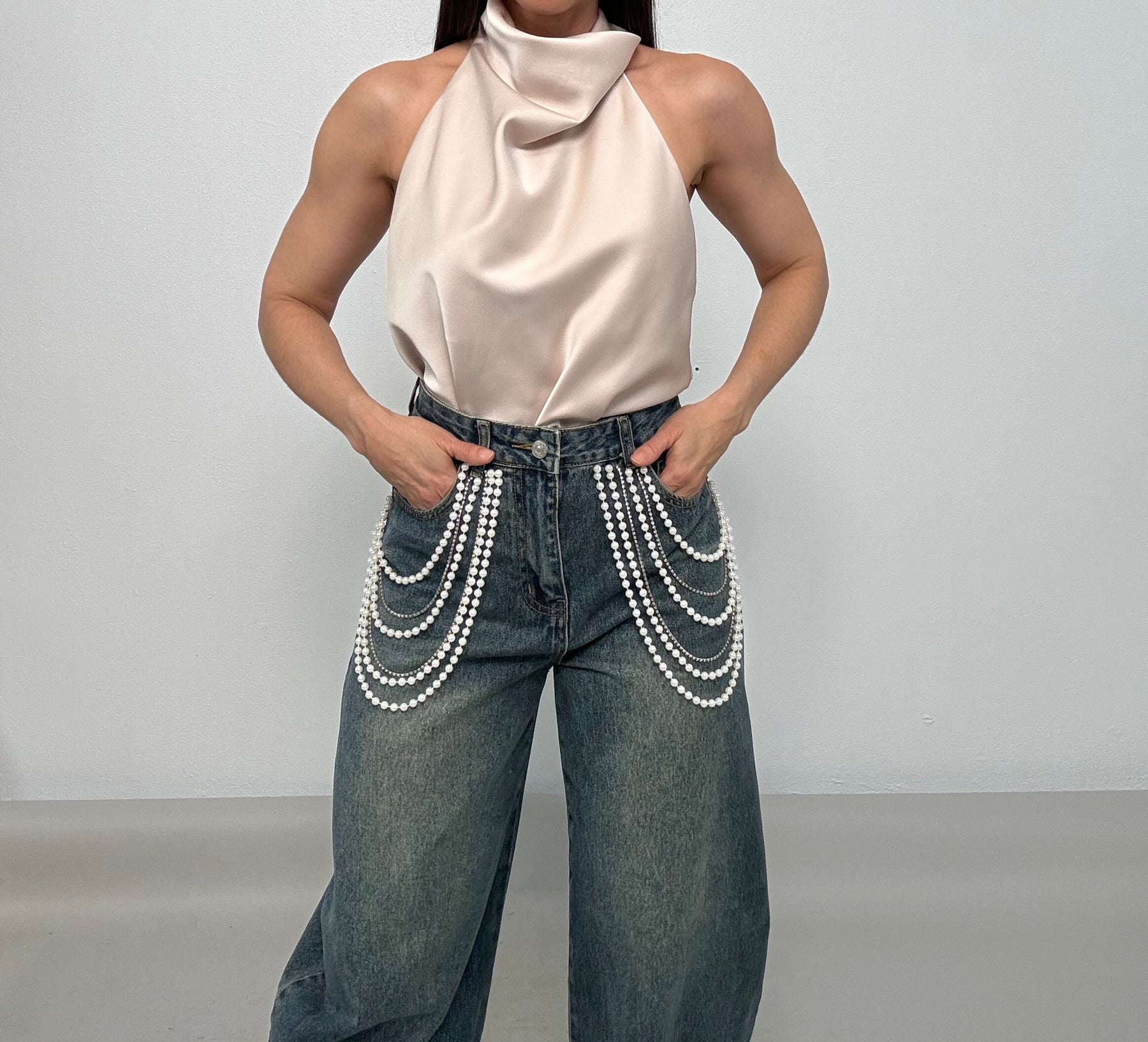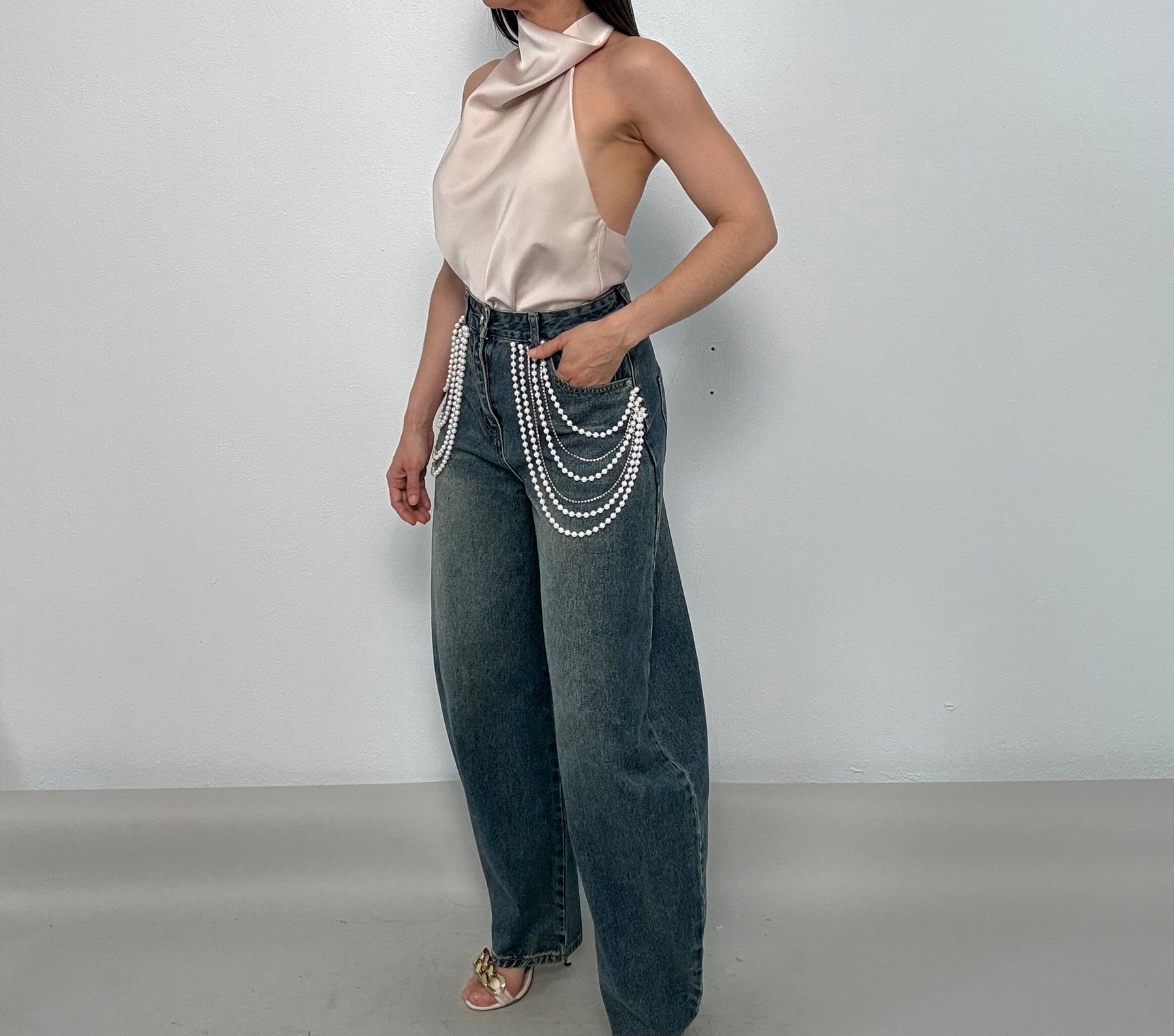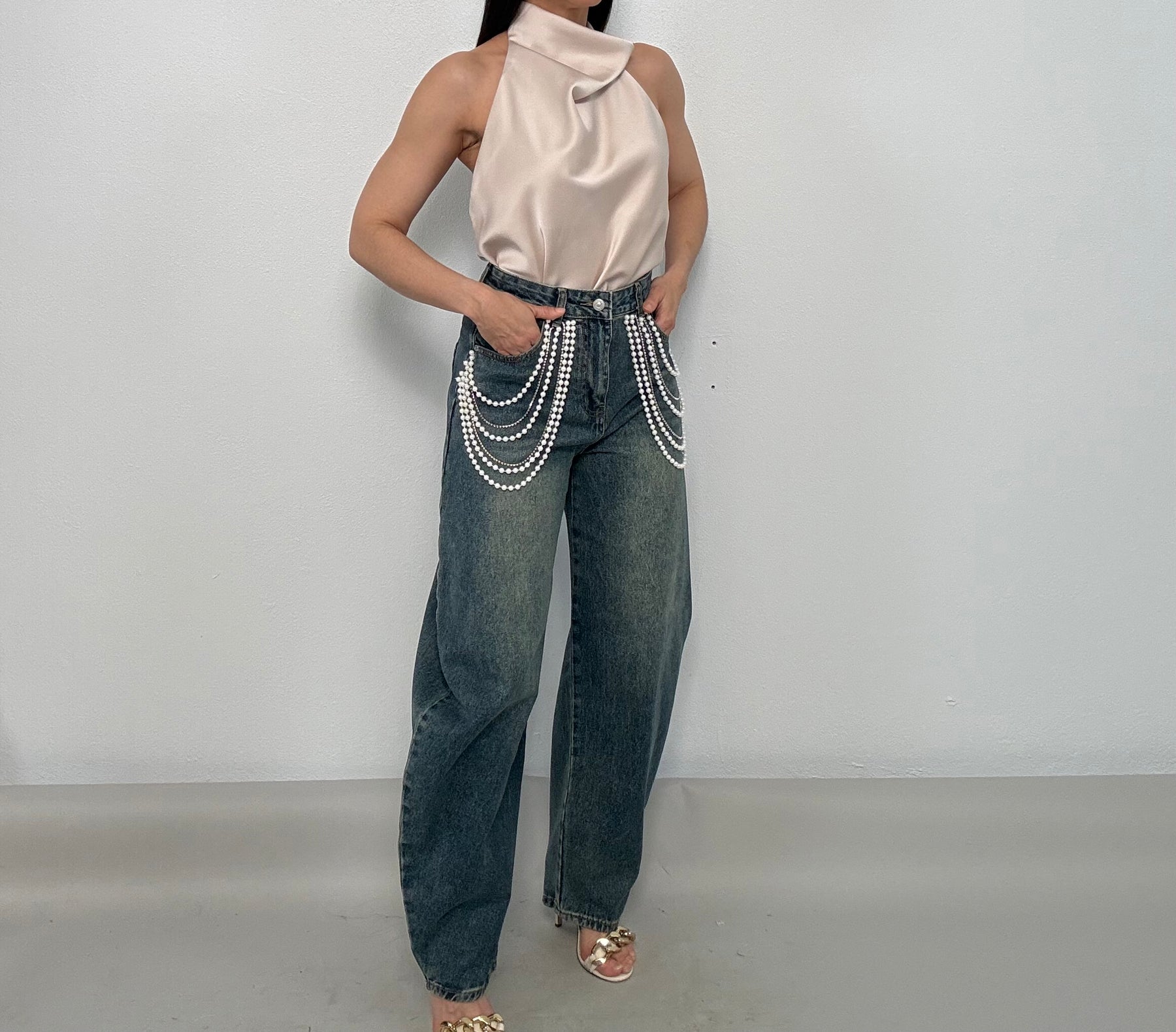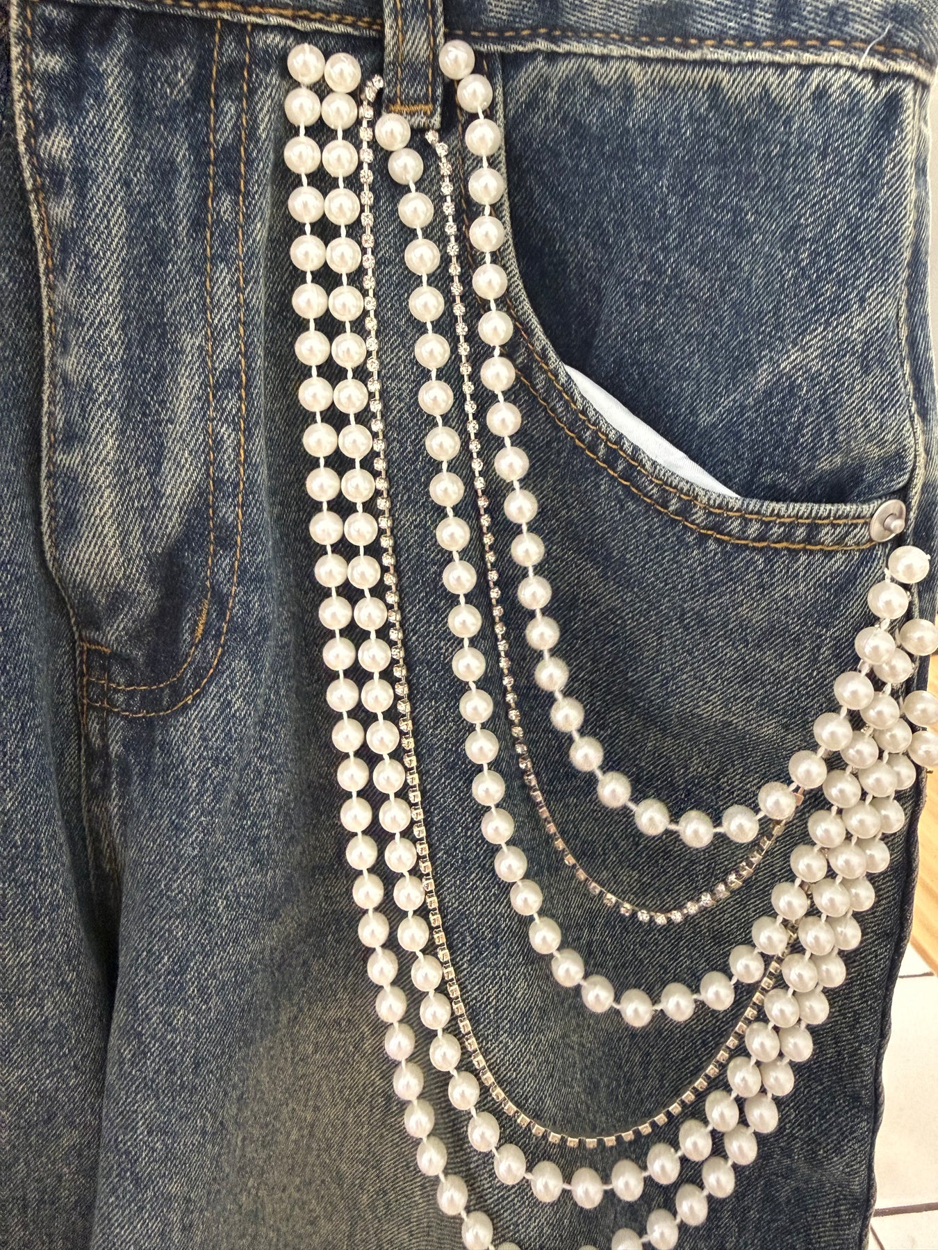 Eydye Pearls & Rhinestones Denim Jean