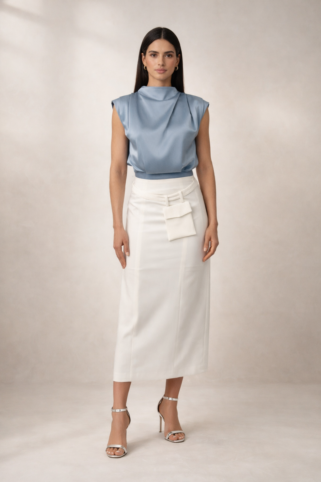 - Al seleccionar su talla, tenga en cuenta que nuestra ropa es más pequeña que la de los grandes minoristas. Si necesita ayuda con el ajuste, póngase en contacto con nosotros en support@runwayskirts.com para obtener más ayuda.