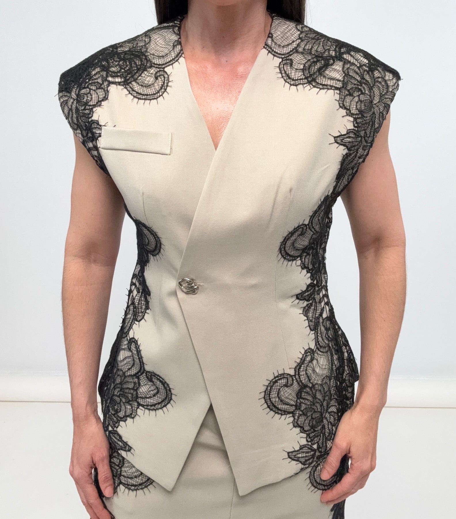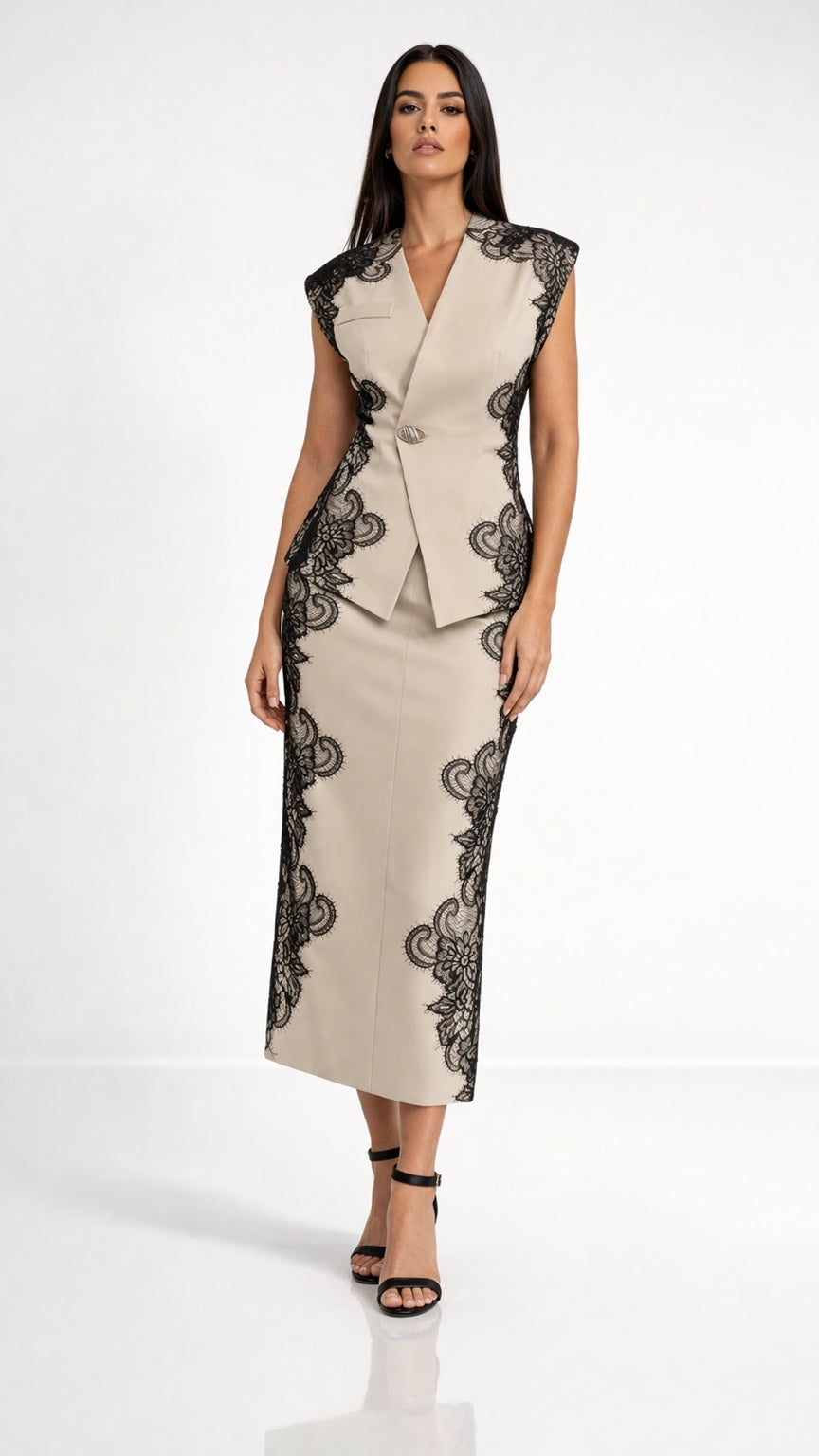 PRE ORDER Mildred Cream Lace Trim Tailored Set